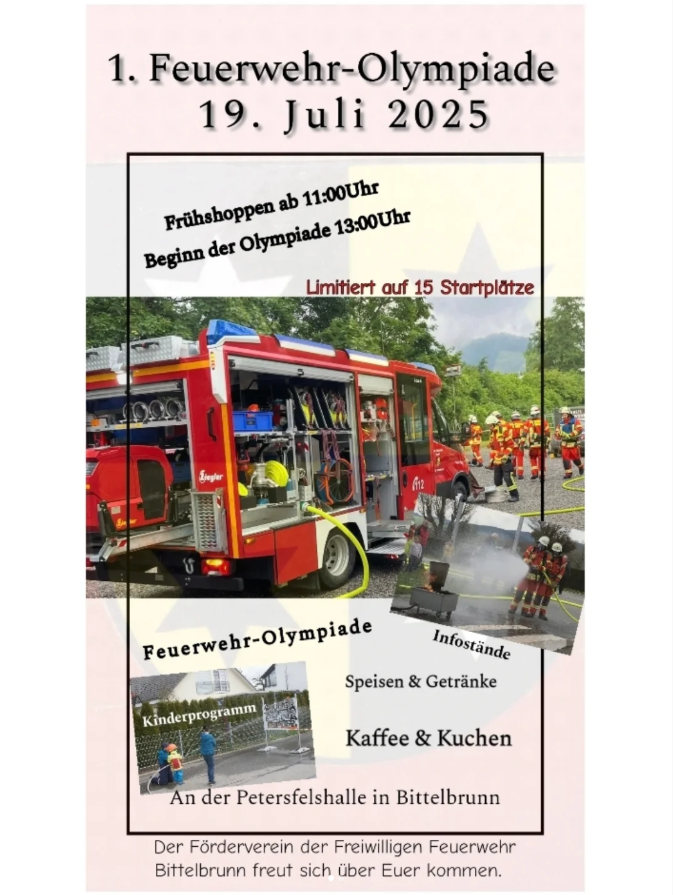 Macht mit bei der ersten Feuerwehr-Olympiade in Bittelbrunn und stellt euer Können und eure Geschicklichkeit unter beweis.